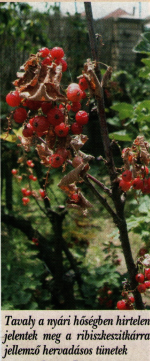 A sokéves átlagnál jóval csapadékosabb és kissé hűvösebb május nem kedvezett a ribiszke amerikai lisztharmat elterjedésének. Június elején folytatódott a májusi időjárás, az első jelentős felmelegedést 12-én tapasztaltuk, észlelési szinten, június 20-a körül találtuk meg a kórokozót a fogékony fajtákon (Fertődi Fj). Az augusztus közepi hűvösebb csapadékos periódus beköszöntéig a fertőzés gyenge mértékben erősödött. A friss hajtások nagy része tünetes volt.