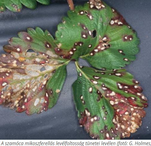 A szamóca levélbetegségei közül jellemzően a mikoszferellás levélfoltosság veszélyeztetett. A tavaszi, nyár elejei csapadékos, mérsékelten meleg idő kedvező feltételeket teremtett a mikoszferella további terjedésének, május végére a fertőzés a táblák 10%-án közepes, 90%-án gyenge mértékű lett.